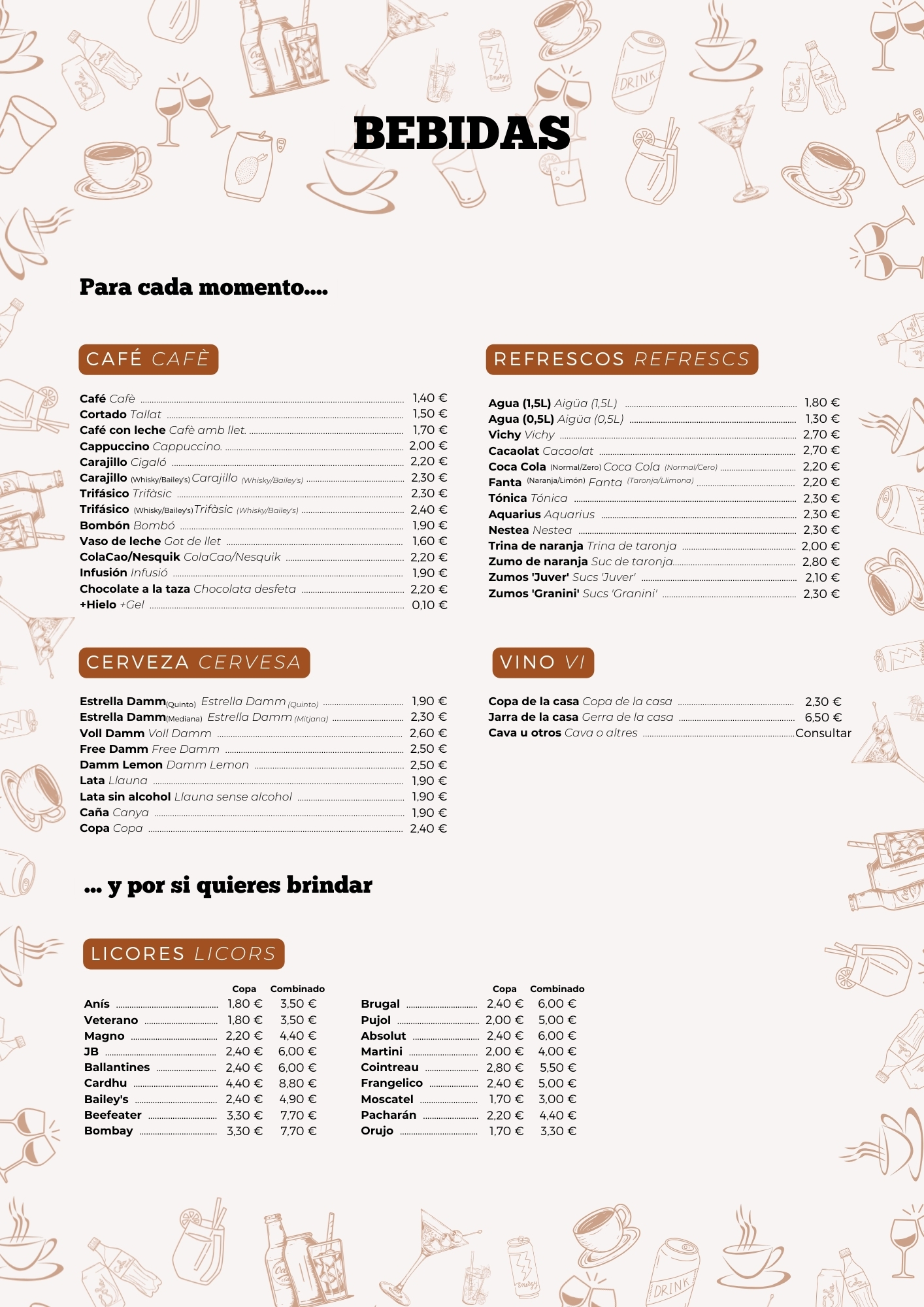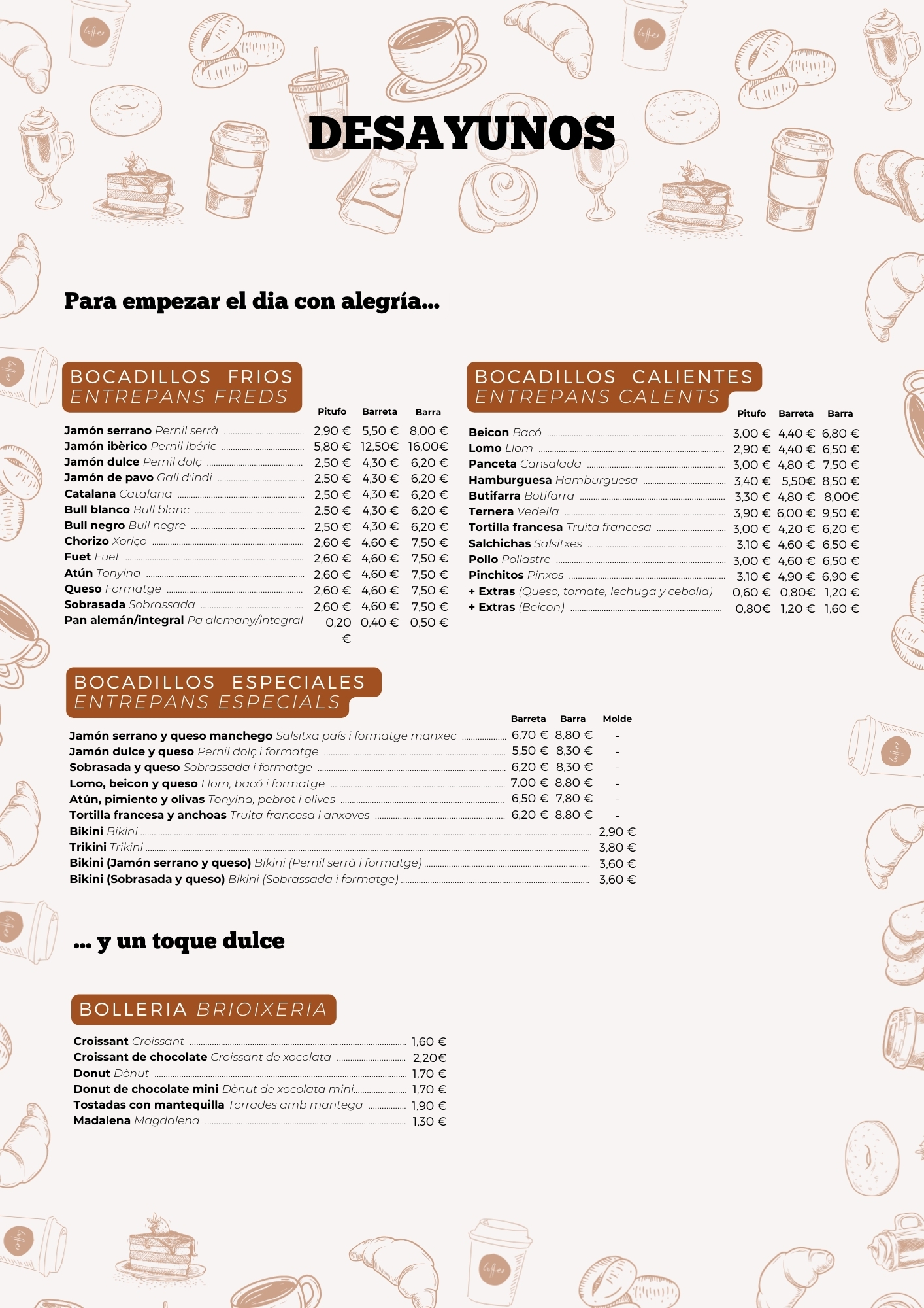 Elige lo que te apetezca de nuestra selección de desayunos, comidas y bebidas.
